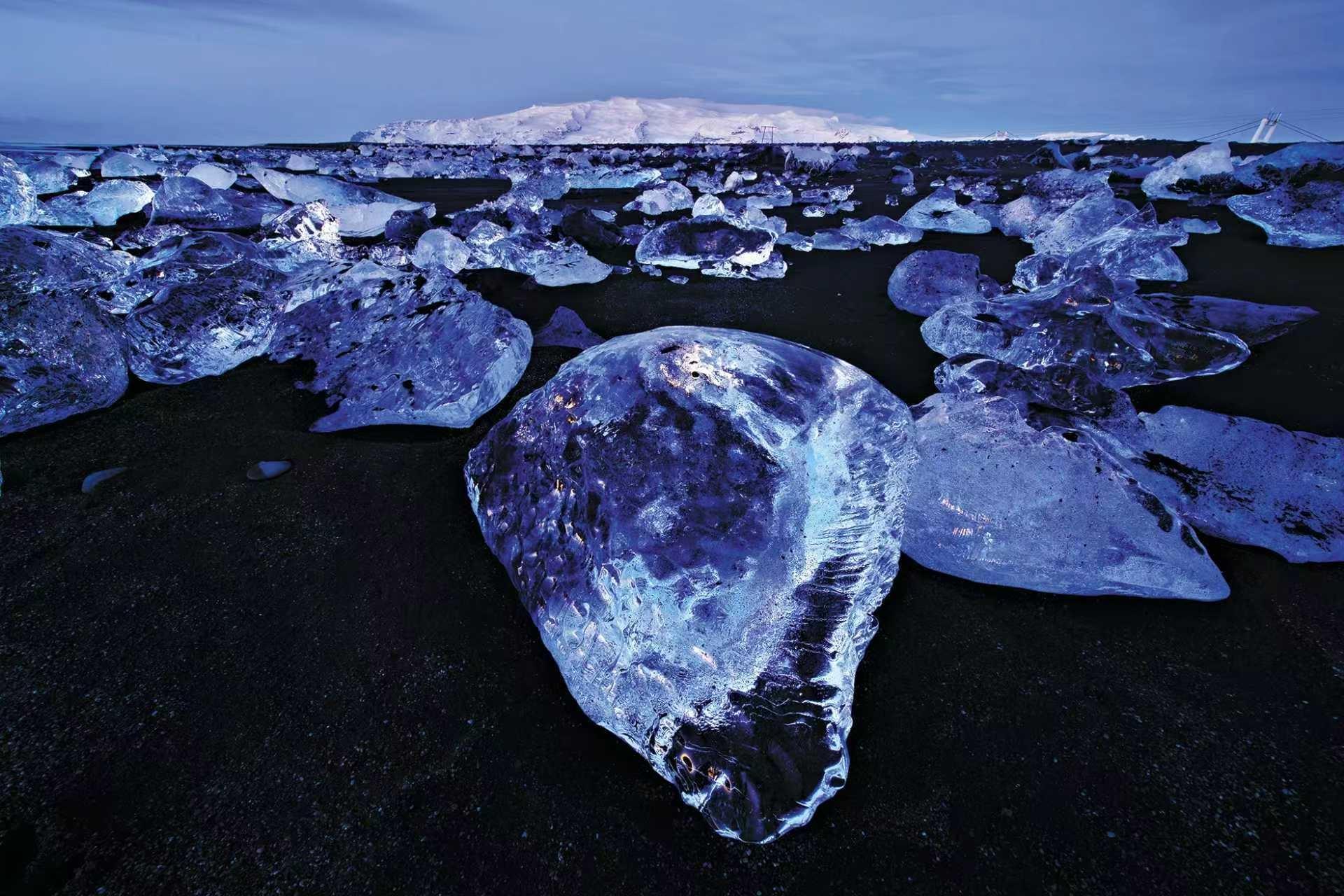 2018年1月30日,冰岛东南海岸著名的黑沙滩(钻石海滩),冰川崩裂的冰块被海水冲上了岸。