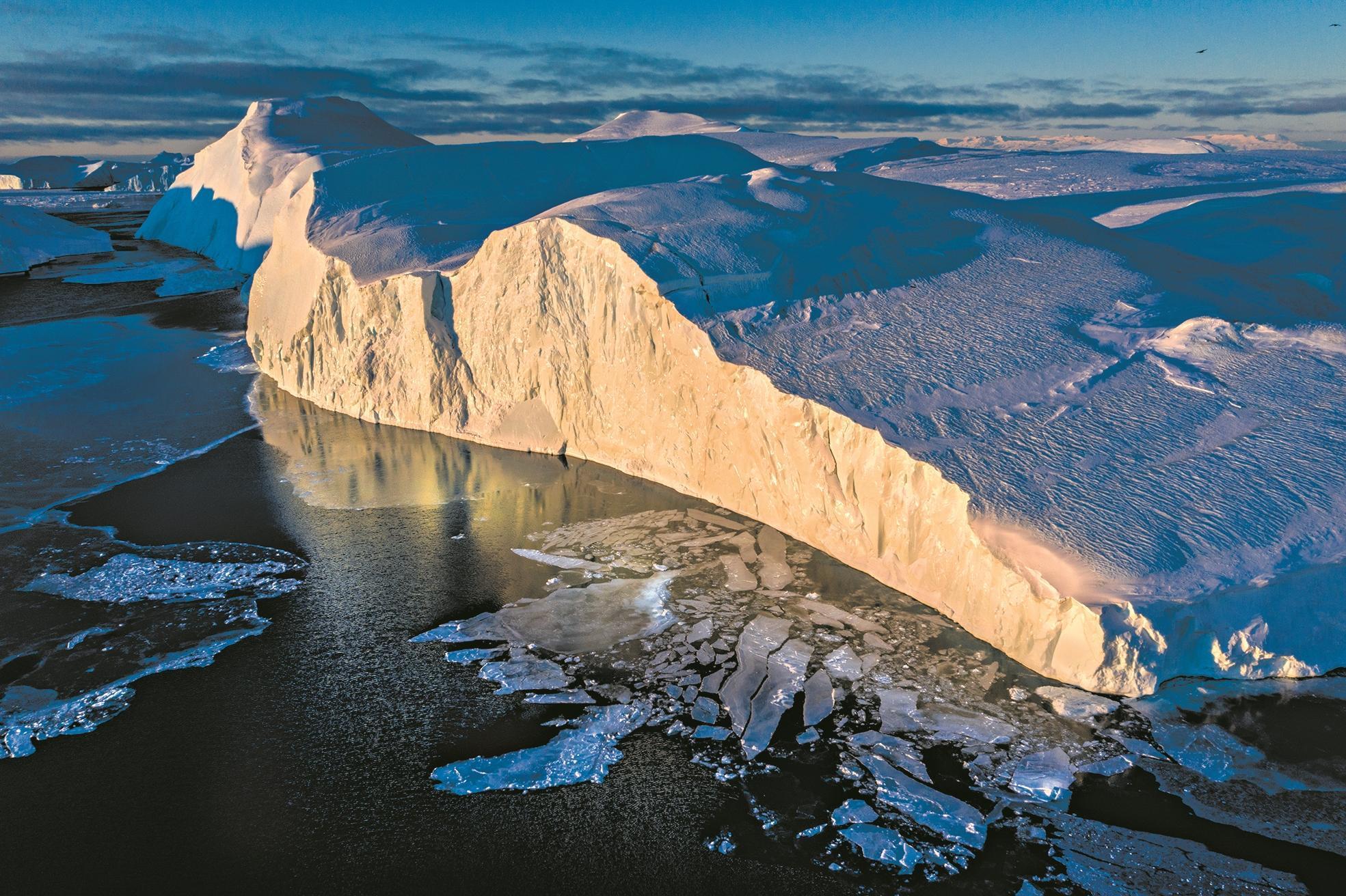2020年1月30日,格陵兰岛,耸立于海面之上的冰山和浮冰。