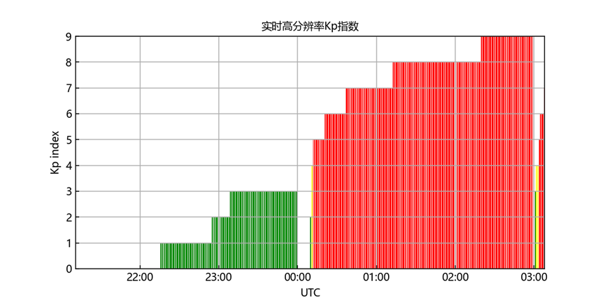 北京时间11月12日8时开始,地球出现磁暴过程,实时地磁活动指数Kp值一度达到9。